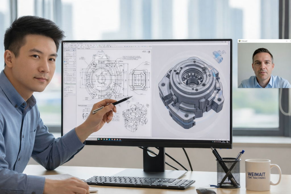 Our engineering and sales teams work directly with clients through live CAD sessions, reviewing 2D drawings and 3D models in detail. We verify critical dimensions, tolerances, and machining features, and provide immediate feedback on manufacturability, material selection, and process planning. This ensures clear specifications, fewer revisions, and a faster transition from design to CNC production.