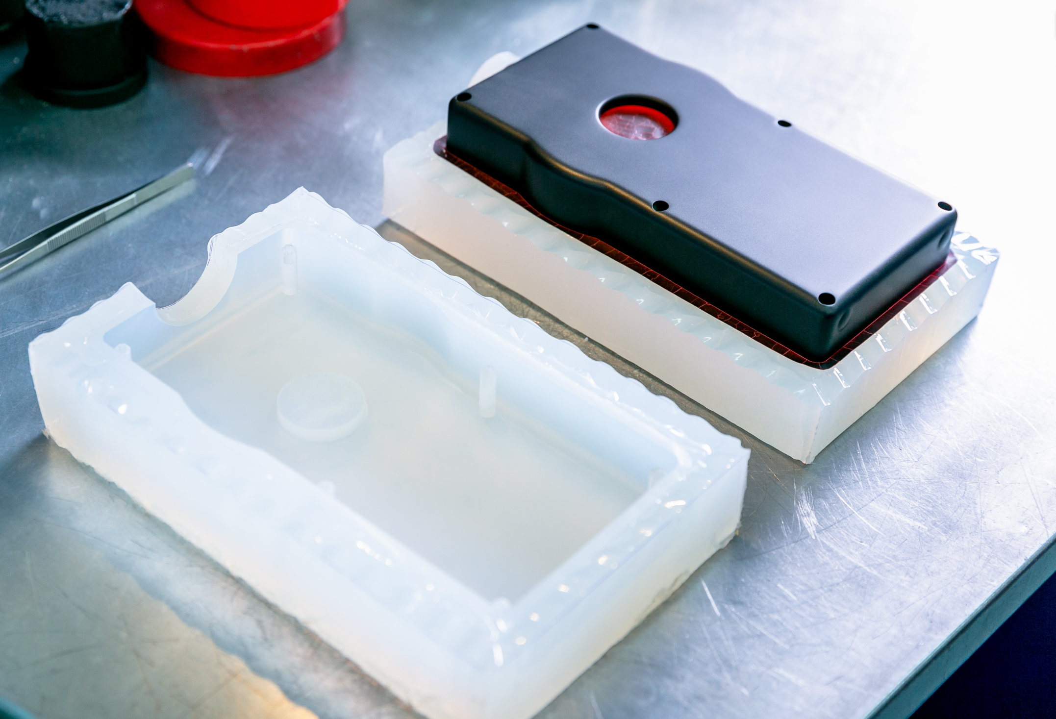 Description: Soft elastomer (TPU/silicone) molded over rigid substrates for enhanced grip and sealing.